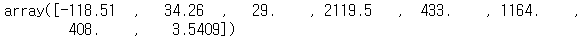 - 예측에 사용할 특성 다수(인구 수, 중간 소득 등) -> 다중 회귀