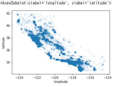 housing.plot(kind="scatter", x="longitude", y="latitude", alpha=0.1)
