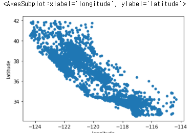 housing.plot(kind="scatter", x="longitude", y="latitude")